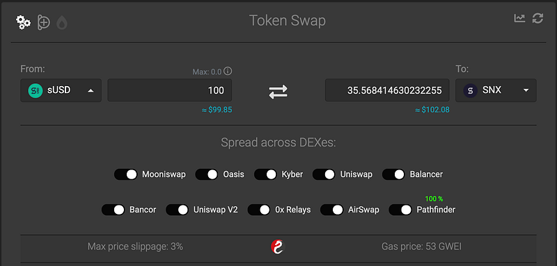 Source: https://1inch.exchange/#/sUSD/SNX