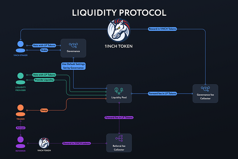 This reward is a part of the swap fee and the price impact fee which will be dedicated to referrers (dApps and wallets that attract users and trading volume). Referrers can subsequently claim their share of 1INCH tokens from all pools in one gas-efficient claim transaction.