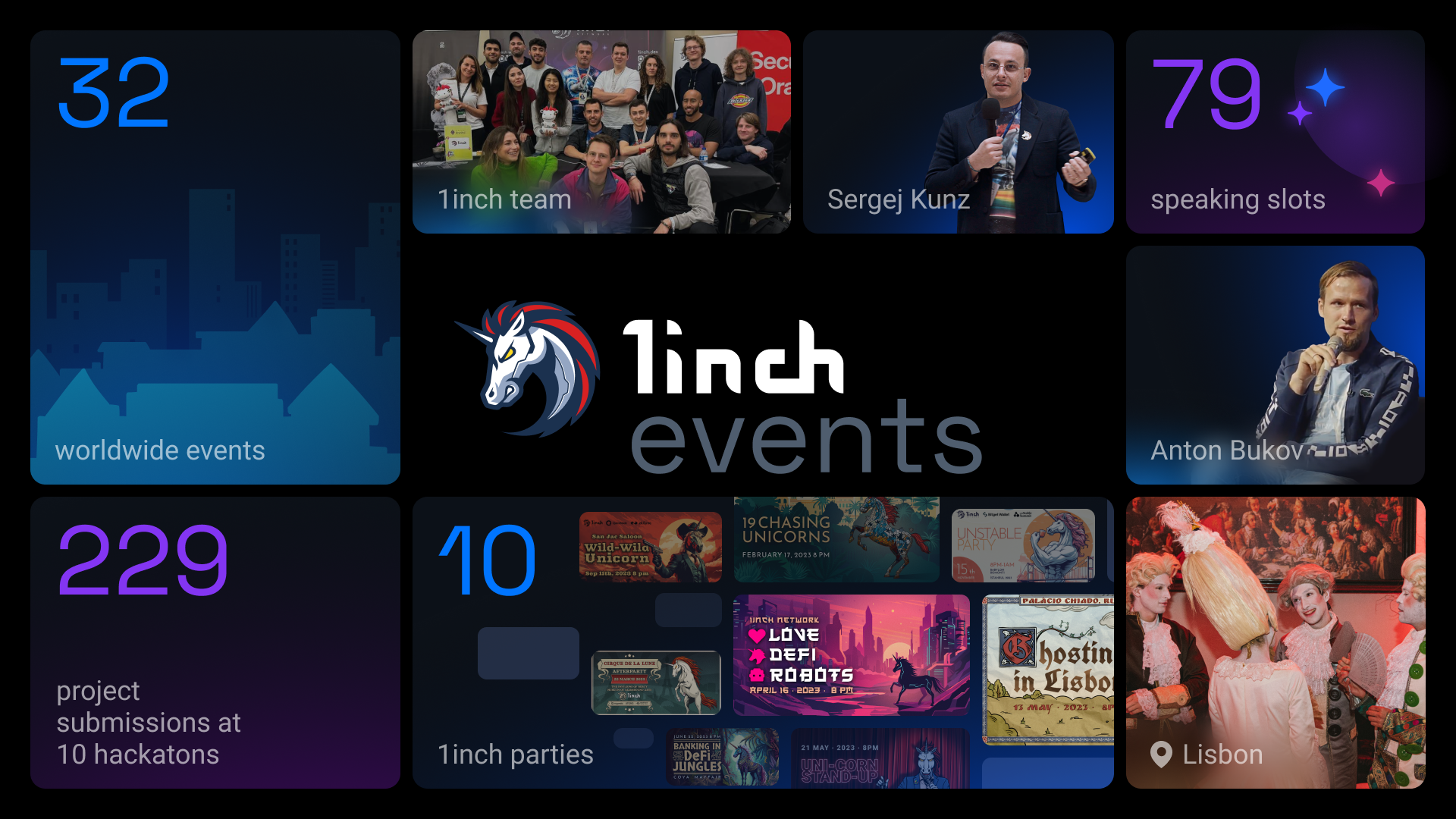 We also continued with our mission of spreading word about DeFi in a bid to foster wider adoption of crypto and DeFi projects. To that end, 1inch sponsored 32 events in 13 countries across four continents. We offered bounties at 10 hackathons, to which 229 projects were submitted. Last but not least, we hosted 10 legendary 1inch parties.