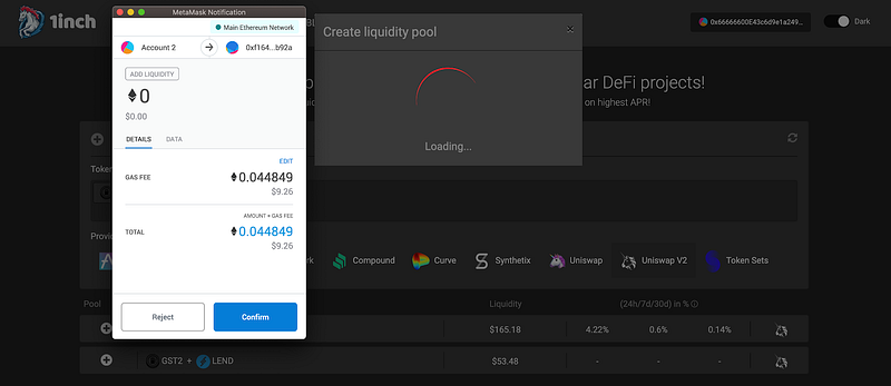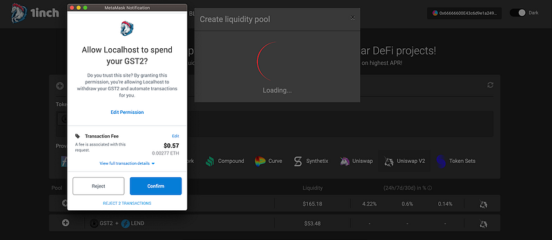 Confirm the pool creation in the MetaMask confirmation pop-up window.