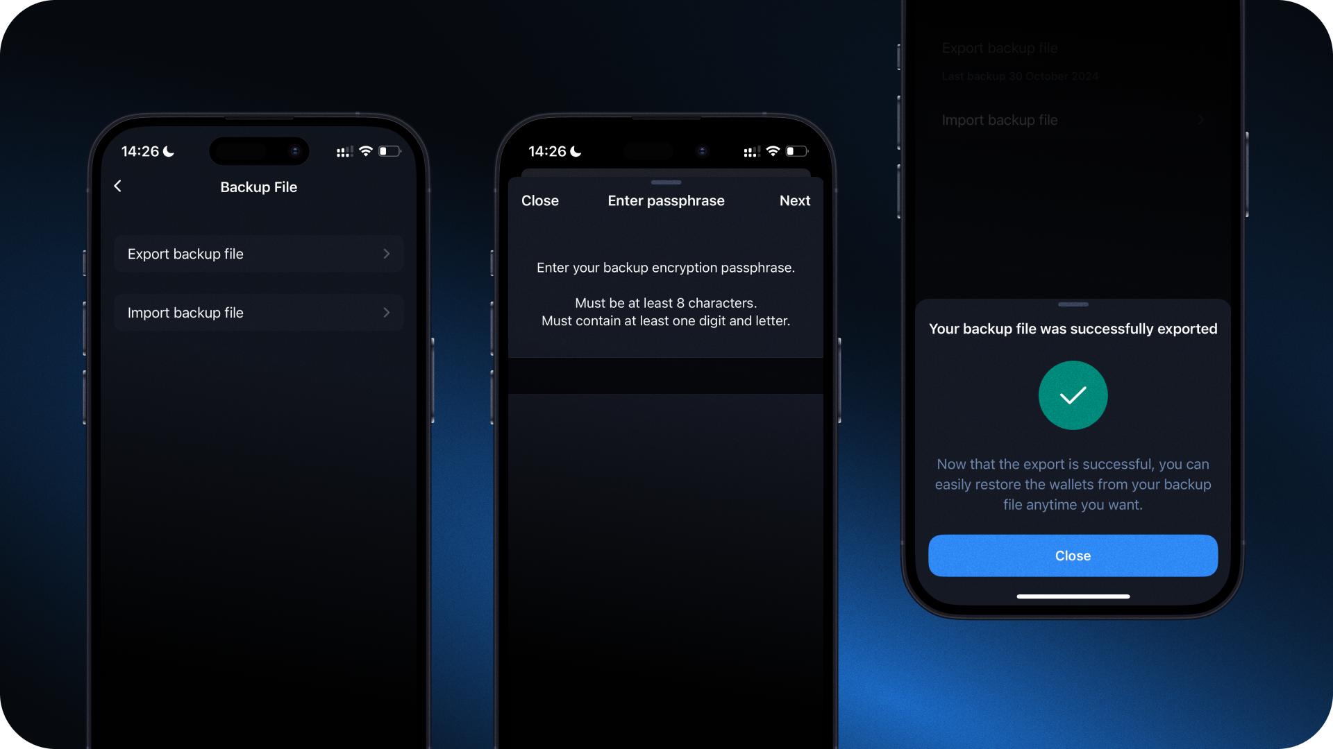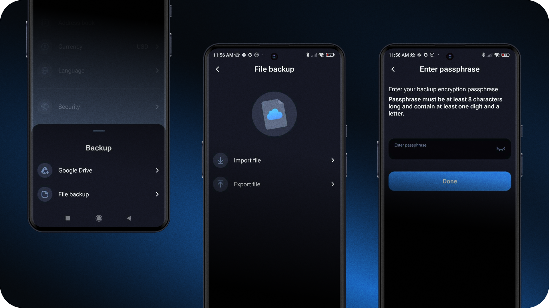 File backup: this additional backup option is compatible across platforms, allowing users to transfer wallet data seamlessly between Android and iOS for secure cross-platform import.