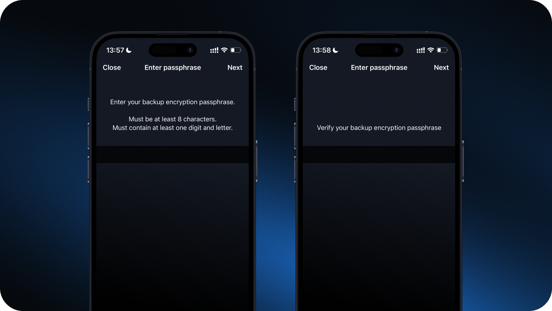 - Set up an encryption passphrase for iCloud, choosing a strong and unique one. You'll need this passphrase to access your wallet on other devices.